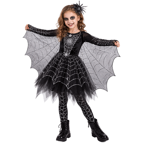 Spider web costume with black and silver web pattern, perfect for Halloween parties and themed events.